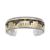 14k gold over sterling silver storyteller bracelet handmade by Roderick Tenorio. Measures 5 1/2" with a 1 1/8" opening. 13/16" width.