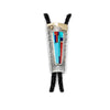 Sterling silver and 14k gold bolo inlaid with turquoise, coral, and lapis by Sonwai. Measures 2 7/8" x 1 1/4" tapper to 3/4".