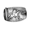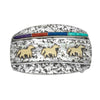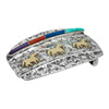 Sterling silver buckle inlaid with sugilite, coral, lapis, and turquoise with 14k gold accents by Ben Nighthorse Campbell. Measures 3 1/4" x 2 1/4". Fits a 1 1/2" belt. Featured in