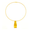 18k gold necklace and earring set by Tammy Garcia. Neck wire measures 16 1/4". Pendant measures 1 3/4" x 3/4" at widest point. Earrings measure 1 7/8".