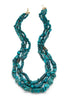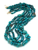 A turquoise collectors dream! This extremely rare high grade fossil Lone Mountain turquoise necklace by Mary Marie Lincoln was published in Turquoise Treasures by Jerry Jacka in 1975. The necklace features a total of 735cts of the high grade fossil Lone Mountain turquoise. The inner strand has 66 beads, the middle strand has 72 beads and the outer strand has 68 beads. Total length of the necklace is 23". See attached letter from Barry S. Kues explaining how Lone Mountain turquoise fossils are formed.