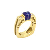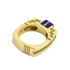 18k gold ring inlaid with lapis, opal and set with two diamonds. Size 7 1/4. Face measures 11/16" x 1/4".