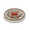 Vernon Haskie sterling silver buckle with finely inlaid with beautifully matched Mediterranean coral. Measures 3" x 1 15/16". Fits a 1 1/4" belt.