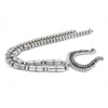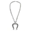 Sterling silver necklace with hand made beads and naja featuring fine stamp and repousse design by Thomas Jim. Measures 23". Naja measures 2 5/8" x 2 1/4".