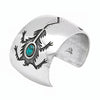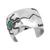 Sterling silver Hopi overlay bracelet set with turquoise by Manuel Hoyungwa. Measures 5 1/2" with a 1 1/2" opening. 1 3/4" width.