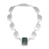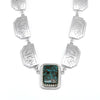 Sterling silver necklace set with high grade Pilot Mountain turquoise by Alvin Tso. Measures 18 1/2". Bottom drop measures 1 3/8" x 1".
