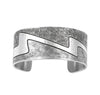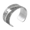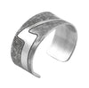 Sterling silver stamped bracelet by Jared Chavez. Measures 5 1/4" with a 1 1/8" opening. 1" width.